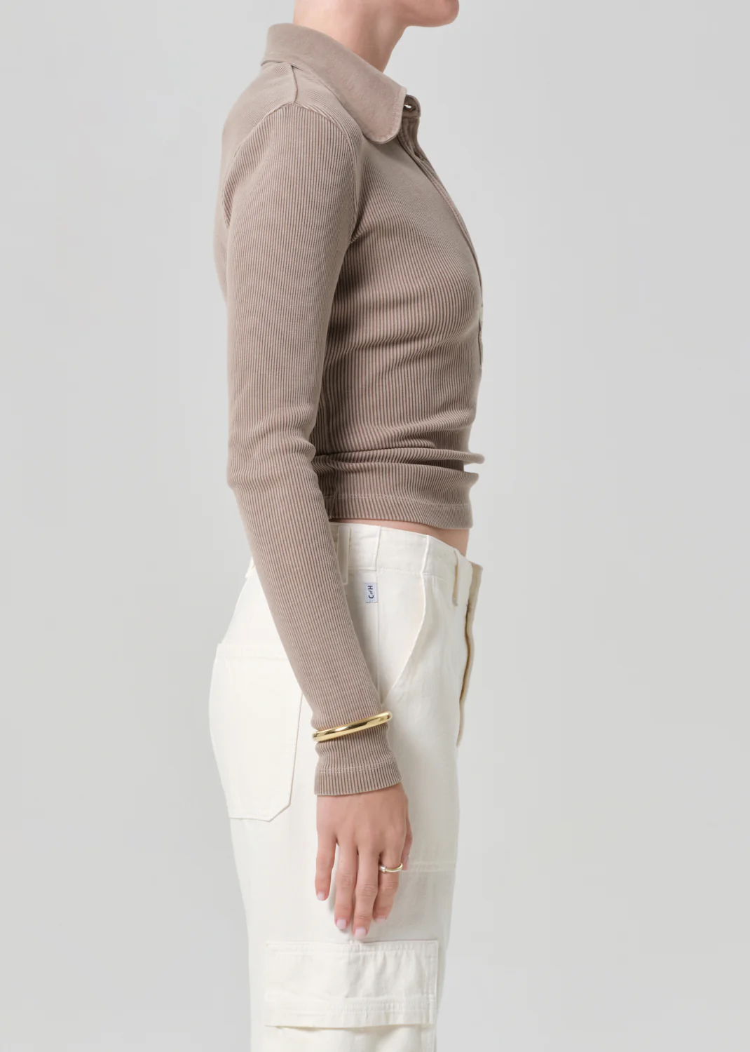 A modern nod to a vintage classic, the Brea 60’s Polo is crafted from ultra-soft, supportive ribbed cotton with a comfortable midweight feel. The long-sleeve silhouette and collared neckline bring effortless structure—perfect tucked into high-rise denim or layered under a blazer for refined ease.