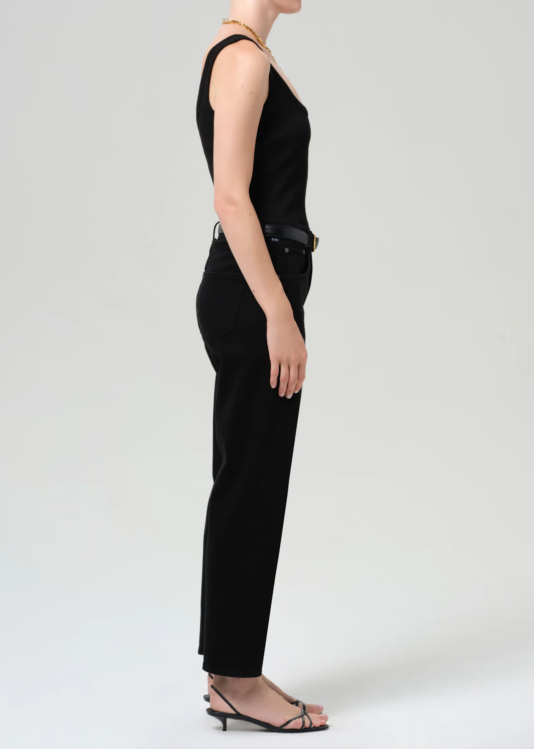 Looks Like: Clean black denim pant