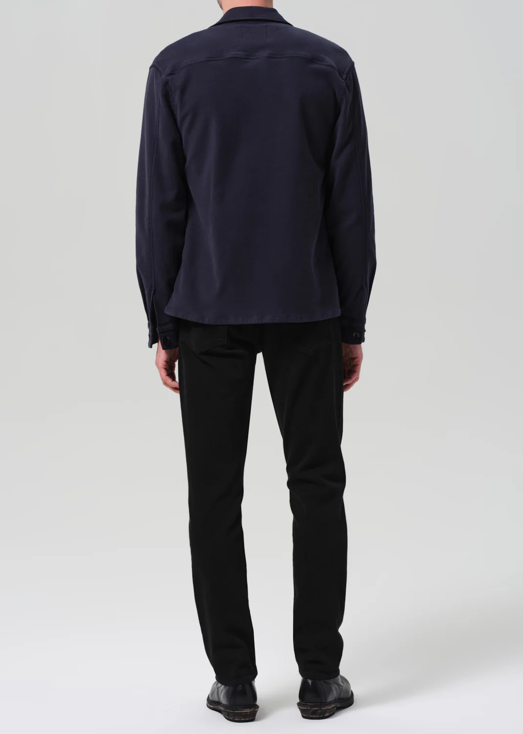 The Gage Classic Straight is a wardrobe cornerstone, cut from midweight Perform denim blended with cashmere for an ultra-soft hand. The tapered silhouette offers room through the hip and thigh, then streamlines below the knee for a clean, modern finish. Starless is a rich black wash with a crisp, polished feel.