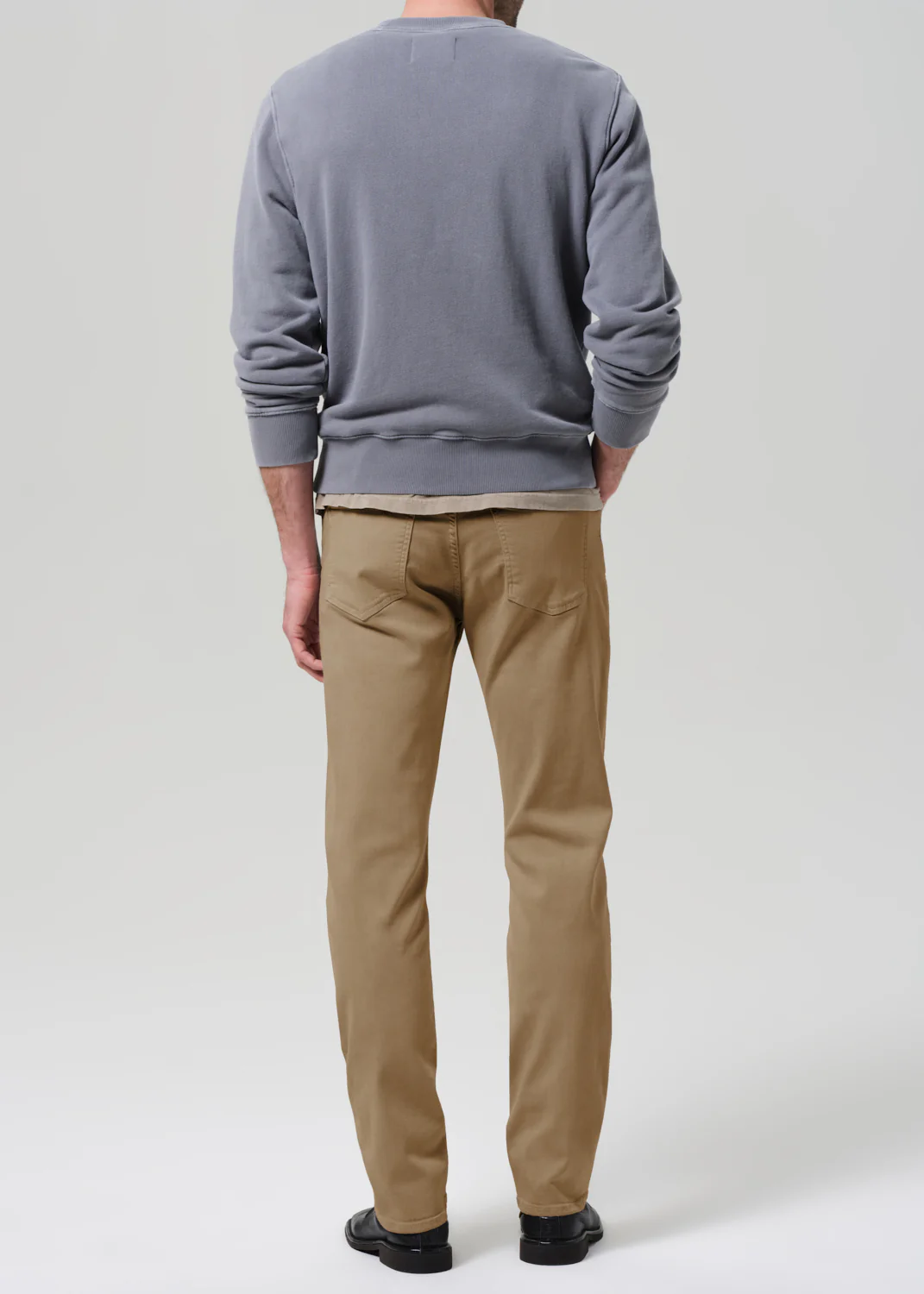 The Gage is a classic straight-leg fit with a mid rise and a tailored, easy silhouette. This pair is cut from soft weft stretch twill—lightweight, breathable, and structured for all-day comfort. Finished in a dark khaki tone for a clean, versatile look.