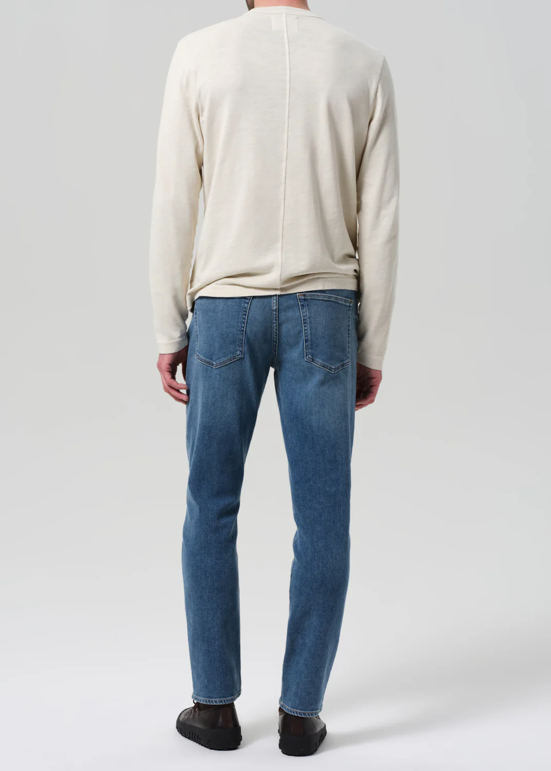 The ‘London’ is a modern slim taper, crafted from signature perform denim blended with cashmere for a refined, ultra-soft feel. Cut to taper from the thigh to the ankle, it offers a sleek yet easy silhouette. The medium-light indigo wash is gently faded and whiskered for a lived-in look.