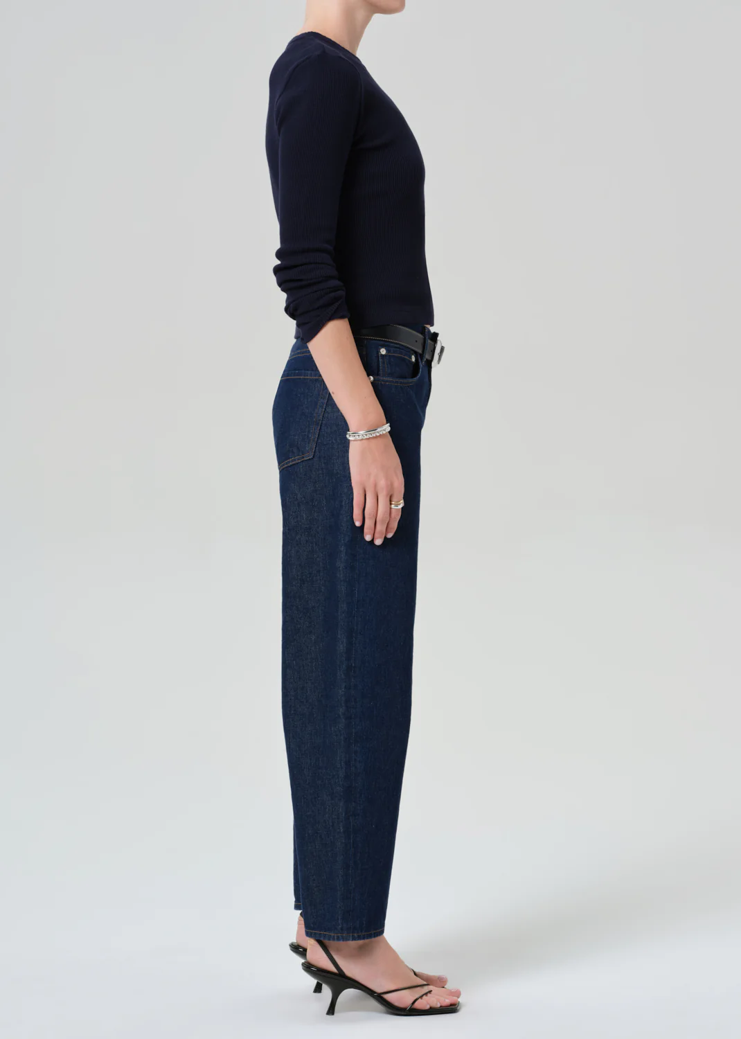 The ‘Miro’ offers a subtle take on the barrel silhouette, designed to sit high on the waist with a relaxed shape that tapers softly toward the ankle. Crafted from rigid regenerative cotton with a soft hand, the clean rinse wash feels classic yet modern. Pairs effortlessly with structured shirting or boxy knits—and works with any shoe.