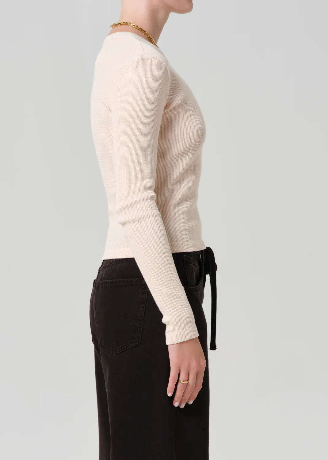 Feels Like: Midweight super soft cotton with waffle thermal texture